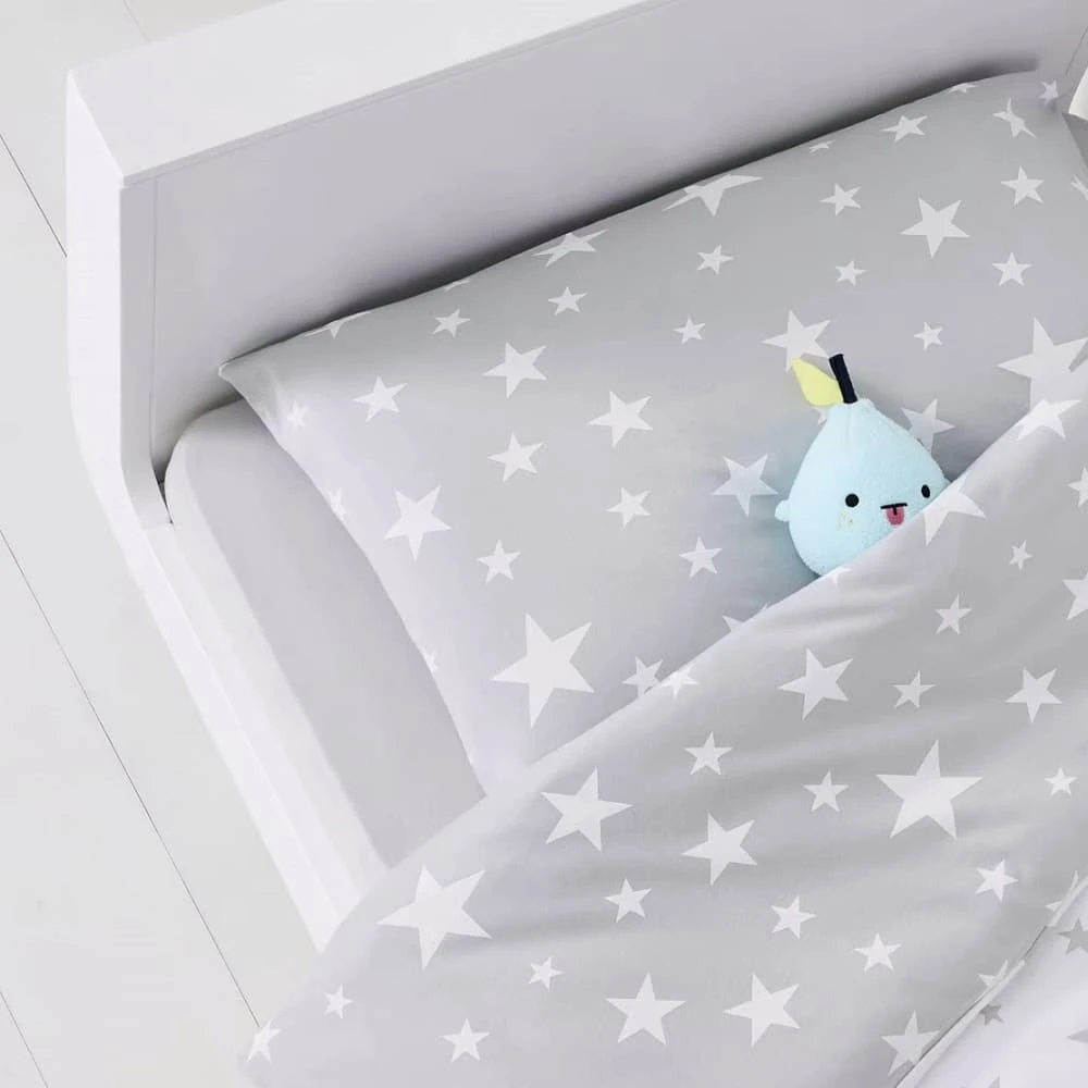 Create the perfect nursery with the stylish Snuz Duvet Cover and Pillowcase set Stars. This set offers a soft reversible duvet cover and pillowcase, perfect for growing kids. Created using 100% soft jersey cotton for a comfy and breathable night’s sleep for your little one.