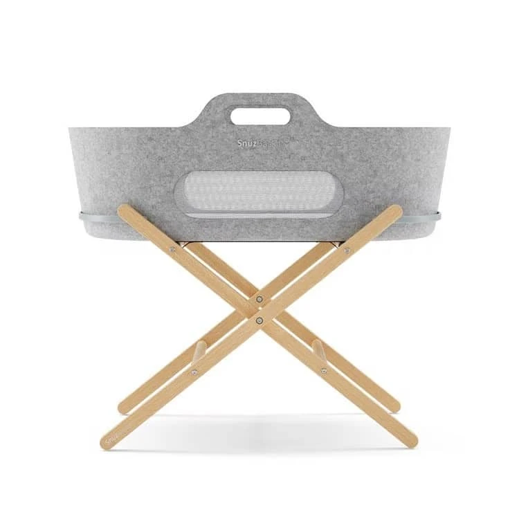SnuzBaskit Light Grey Moses Basket & Natural Stand Set