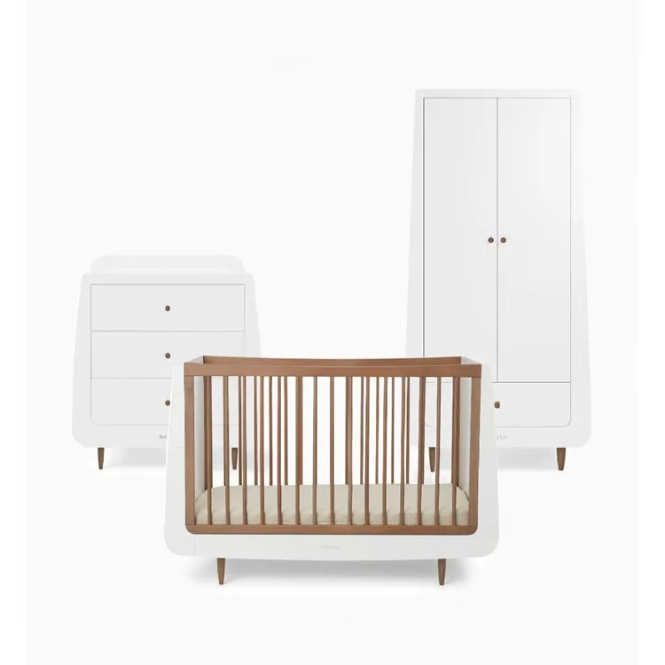 Introducing the Snuz Natural Edit – SnuzKot Skandi 5 Piece Nursery Room Set Bundle – White with Walnut