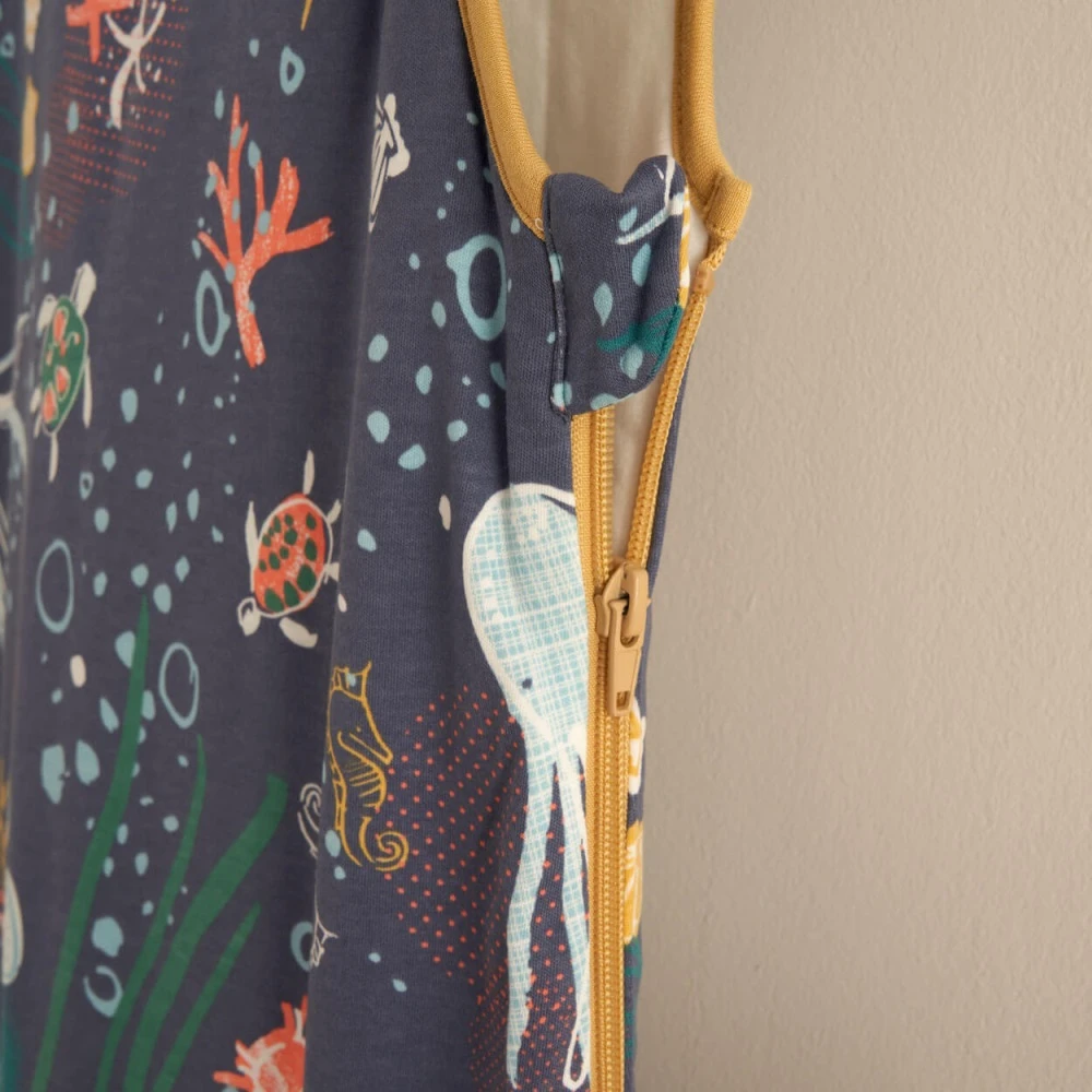 Tutti Bambini Baby Sleep Bag 0-6 Months – Our Planet is a great alternative to traditional sheets and blanket. This 2.5 tog baby sleeping bag will keep your little one cosy and warm without worrying about loose blankets or overheating. Bamboo is breathable and has moisture wicking and temperature controlling properties too.