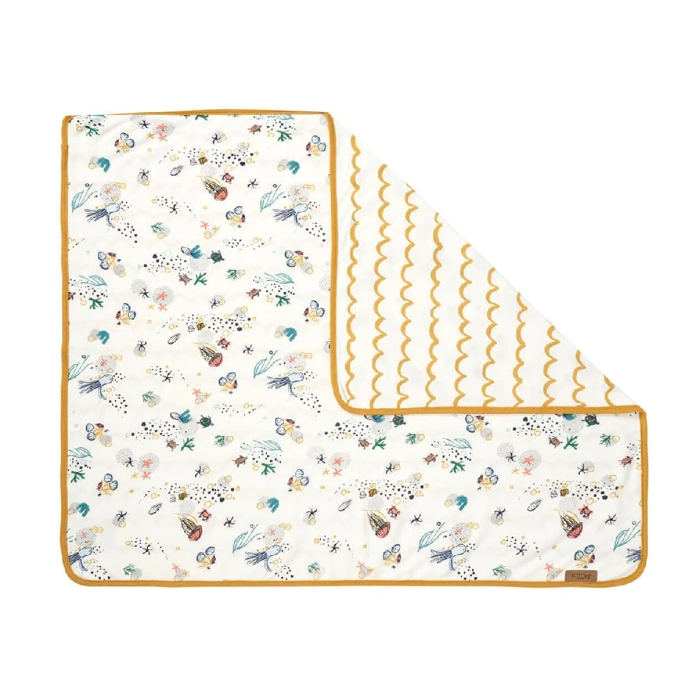 Tutti Bambini Bedside Crib Starter Pack β Our Planet is made from 100% certified organic cotton, our starter pack is the perfect bedding bundle for your babyβs first crib. The set includes two fully tailored crib fitted sheets, with double seams for added strength and security, and a matching coverlet that is lightweight and reversible, to keep your baby comfortable and cosy all night. With an exuberant marine theme featuring sea creatures and evocative waves, the set co-ordinates with the rest of Our Planet collection.