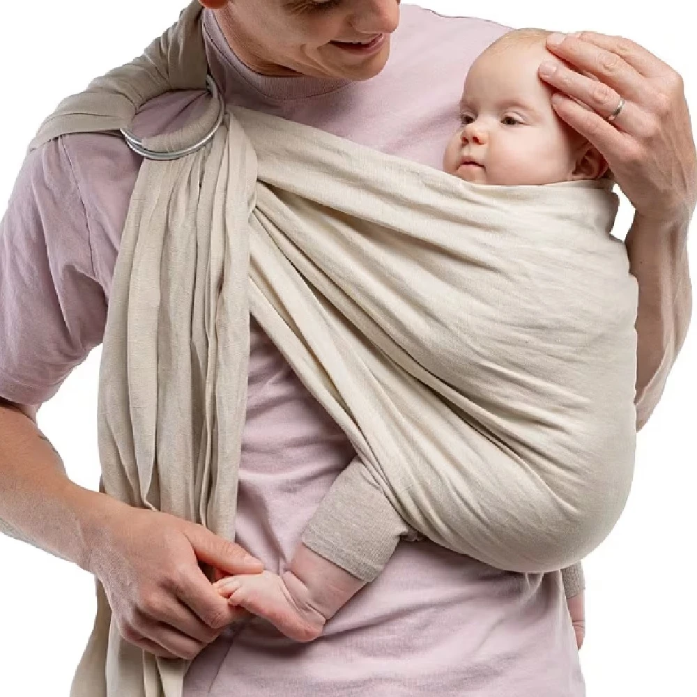 The ring sling baby carrier effortlessly adjusts to all wearers with a simple pull, making it perfect for sharing and a go-to baby wraps carrier sling for modern parents on the go. It is adjustable up to 200cm in length and 69cm wide.