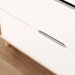 Meet our Tutti Bambini Fika 2 Piece Room Set β White/Light Oak β a Scandinavian-inspired blend of modern simplicity and functionality.Β With bevelled edges, stylish splayed legs and chic cut-out handles.Β Β Itβs the ideal choice for those seeking a minimalistic, contemporary nursery look.