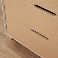 Meet our Tutti Bambini Fika 3 Piece Room Set β Light Oak/White Sand β a Scandinavian-inspired blend of modern simplicity and functionality.Β With bevelled edges, stylish splayed legs and chic cut-out handles.Β Β Itβs the ideal choice for those seeking a minimalistic, contemporary nursery look.