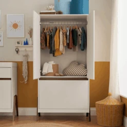 The Fuori 3 Piece Room Set provides ample storage for organizing all your babyβs belongings. With three generously sized drawers on the chest changer and versatile storage options in the wardrobe, it ensures a well-organized space for your babyβs essentials.