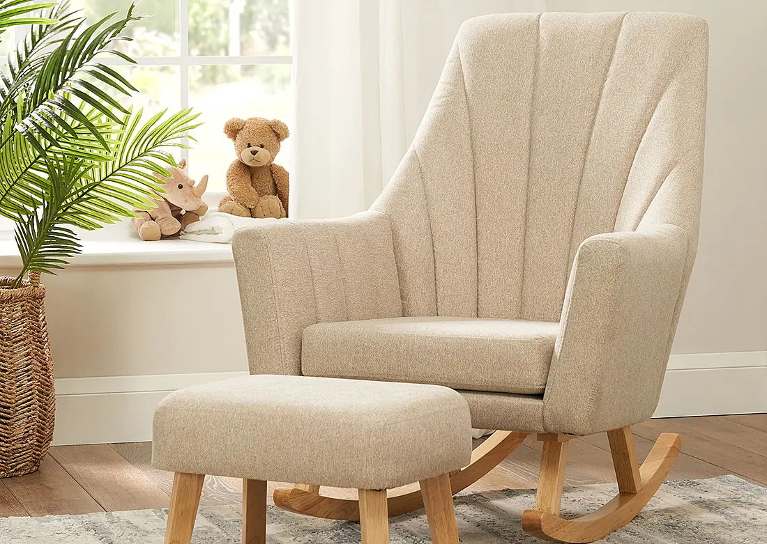Tutti Bambini Jonah Rocking Chair and Foot Stool Set Stone Features