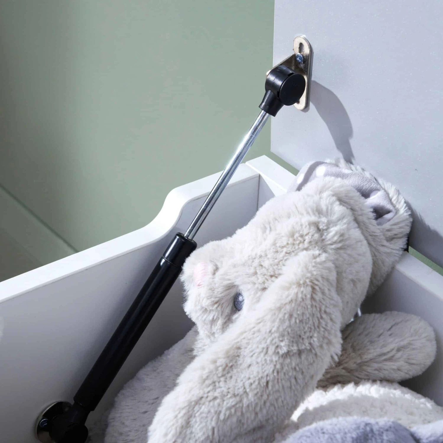 The Rio Toy Box comes with a stylish wooden top cover equipped with slow closing mechanism, that reduces the risk of pinch curious little fingers. There are also special finger holes that allows for easy opening and safe closing from each side.